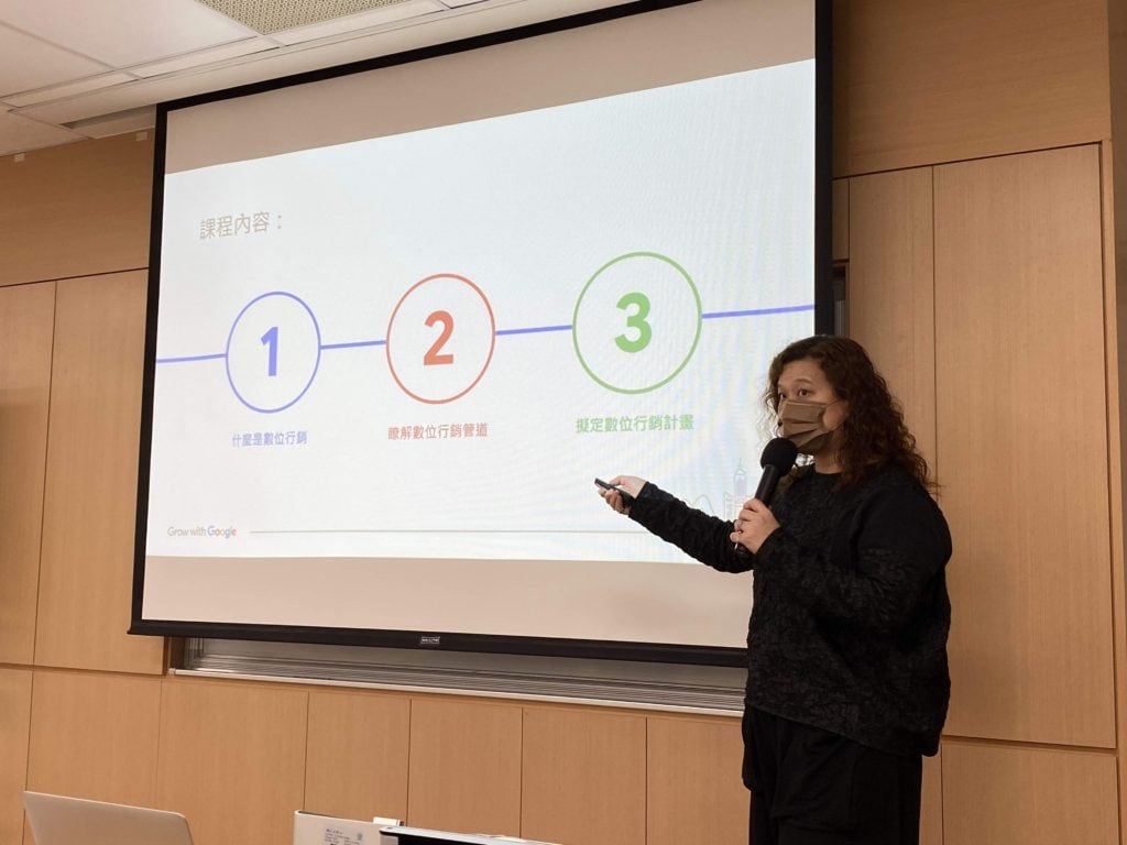 輔仁大學外語學院三月二十三號在德芳大樓舉辦跨域工作坊講座「跨平台行銷與社群媒體策略」,邀請Google講師曾琦樺解說如何開始進行數位行銷,以及運行的必備條件,最後也舉例自身接手的案例進行分析。