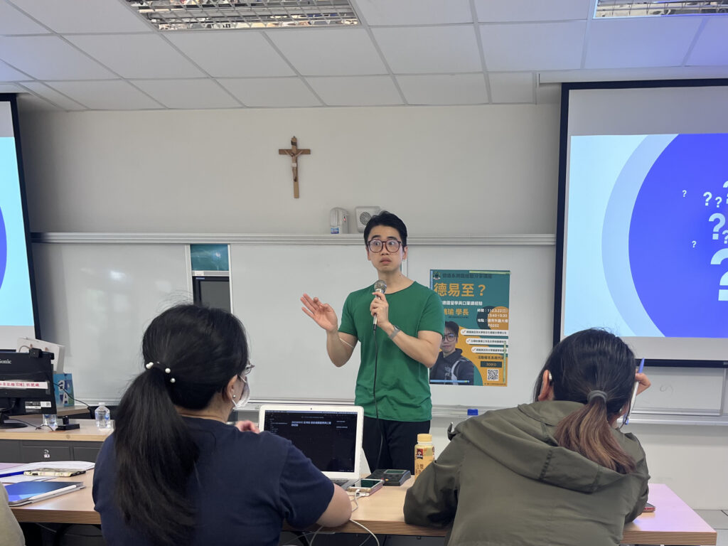 輔仁大學德語語文學系三月二十二號在德芳外語大樓舉辦跨國經驗分享講座,邀請畢業於輔大德語系碩士班巫鴻瑜學長回校分享德國留學及口筆譯經驗,吸引不少想出國深造或對翻譯相關產業感興趣的系內外同學參加。