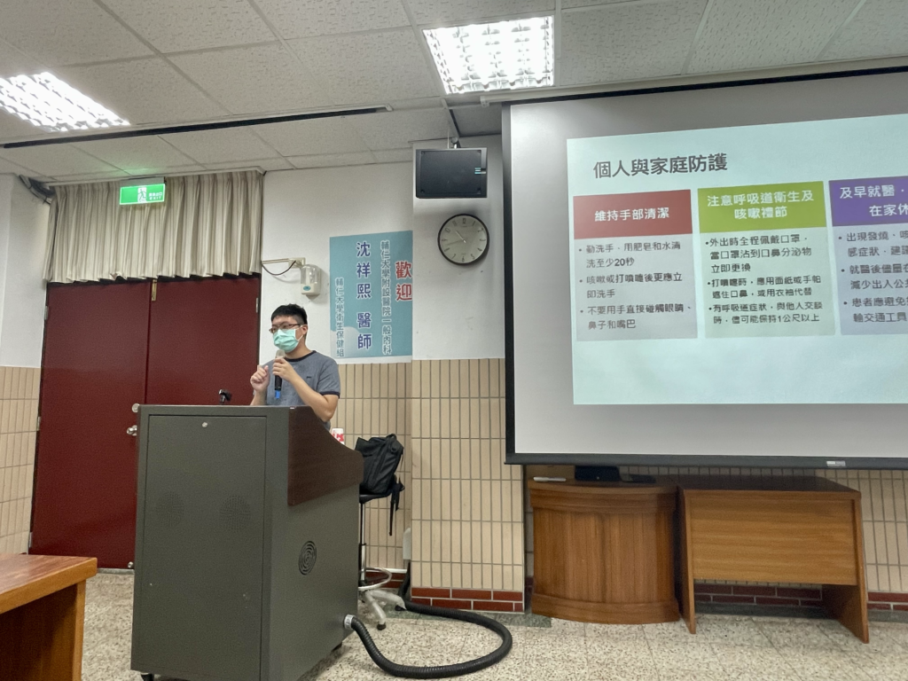 輔仁大學衛生保健組十月六號在文開樓舉辦「傳染病防治專題系列」講座,邀請天主教輔仁大學附設醫院的一般內科主治醫師——沈祥熙醫師分享如何辨別傳染病、傳染病的防治方法以及感染後的措施。