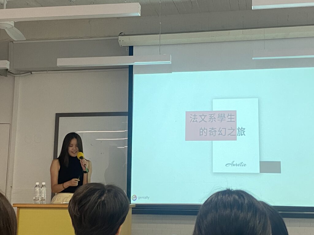 輔仁大學法國語文學系十月十一號在外語學院舉辦「法文系學生的奇幻之旅」講座,邀請法文系第五十三屆系友,現就職於比利時台北辦事處瓦隆尼亞外貿投資總署商業助理的歐陽暐婷,與師生們分享巴黎和比利時經驗。