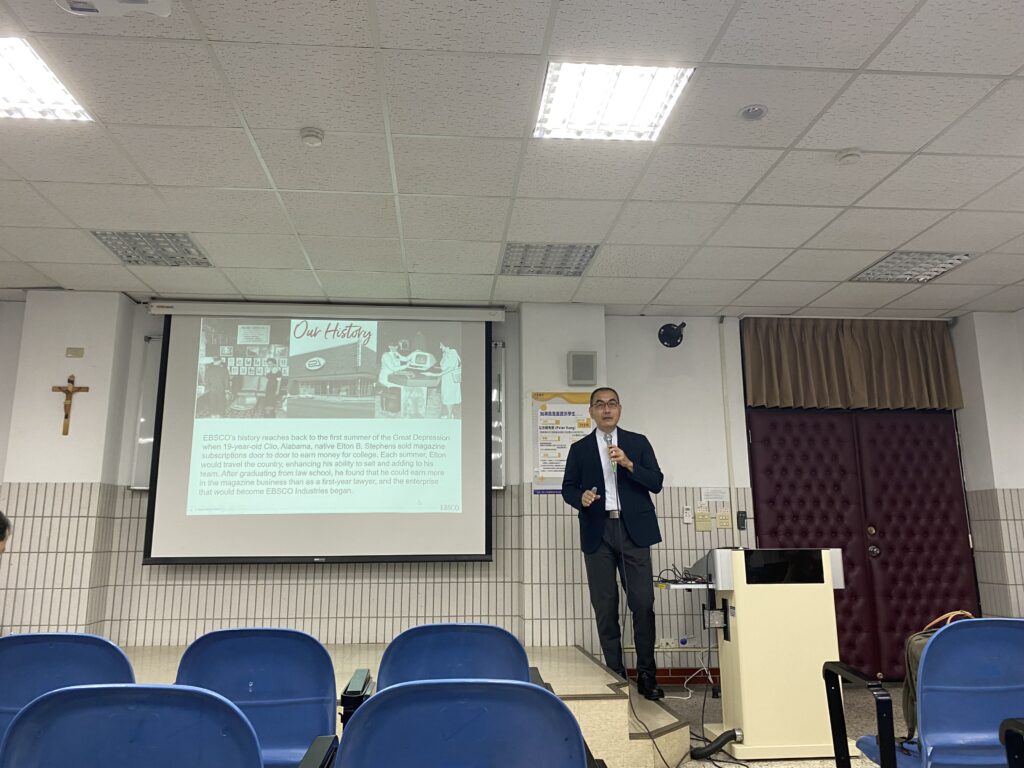 輔仁大學圖書資訊學系系學會十月二十四號在文開樓舉辦「如果我是圖資系學生」講座,邀請美商博科外文資訊股份有限公司大中華與日本業務的副總公丕儉先生與師生們分享自身豐富經歷並討論圖資系的多角發展。