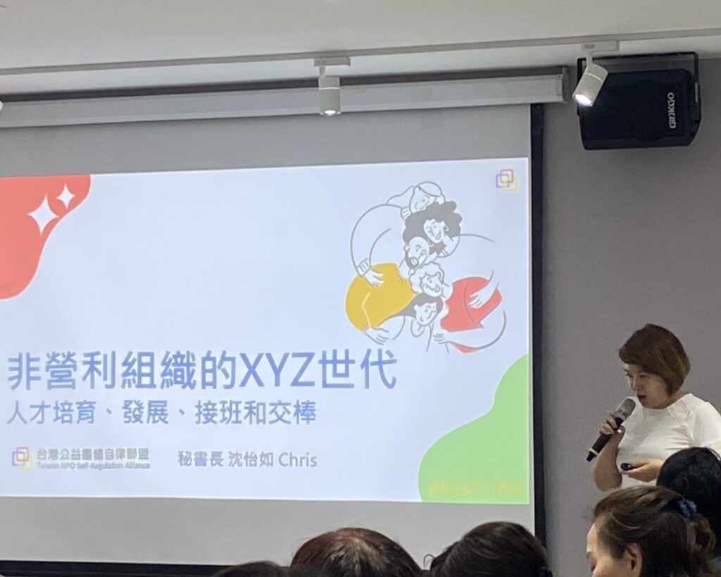 輔仁大學非營利組織管理碩士學位學程在職專班十一月二號在羅耀拉大樓舉辦「非營利組織的XYZ世代」講座,邀請台灣公益團體自律聯盟秘書長沈怡如與現場師生們介紹此組織並分享自身的經驗。
