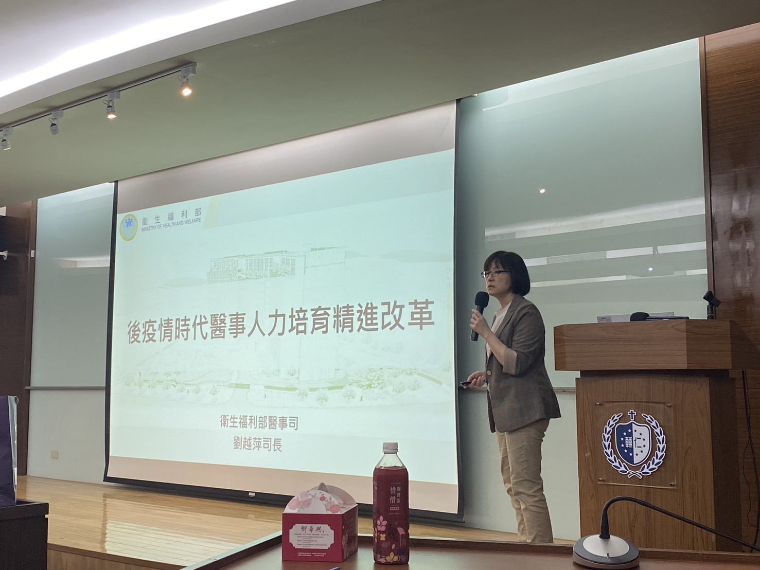 輔仁大學醫學院四月二十九號在國璽樓舉辦「後疫情時代醫事人力培育精進改革」講座,邀請來自衛生福利部醫事司的劉越萍司長與師生分享後疫情時代醫療體系的變動與醫事人力的應對措施。