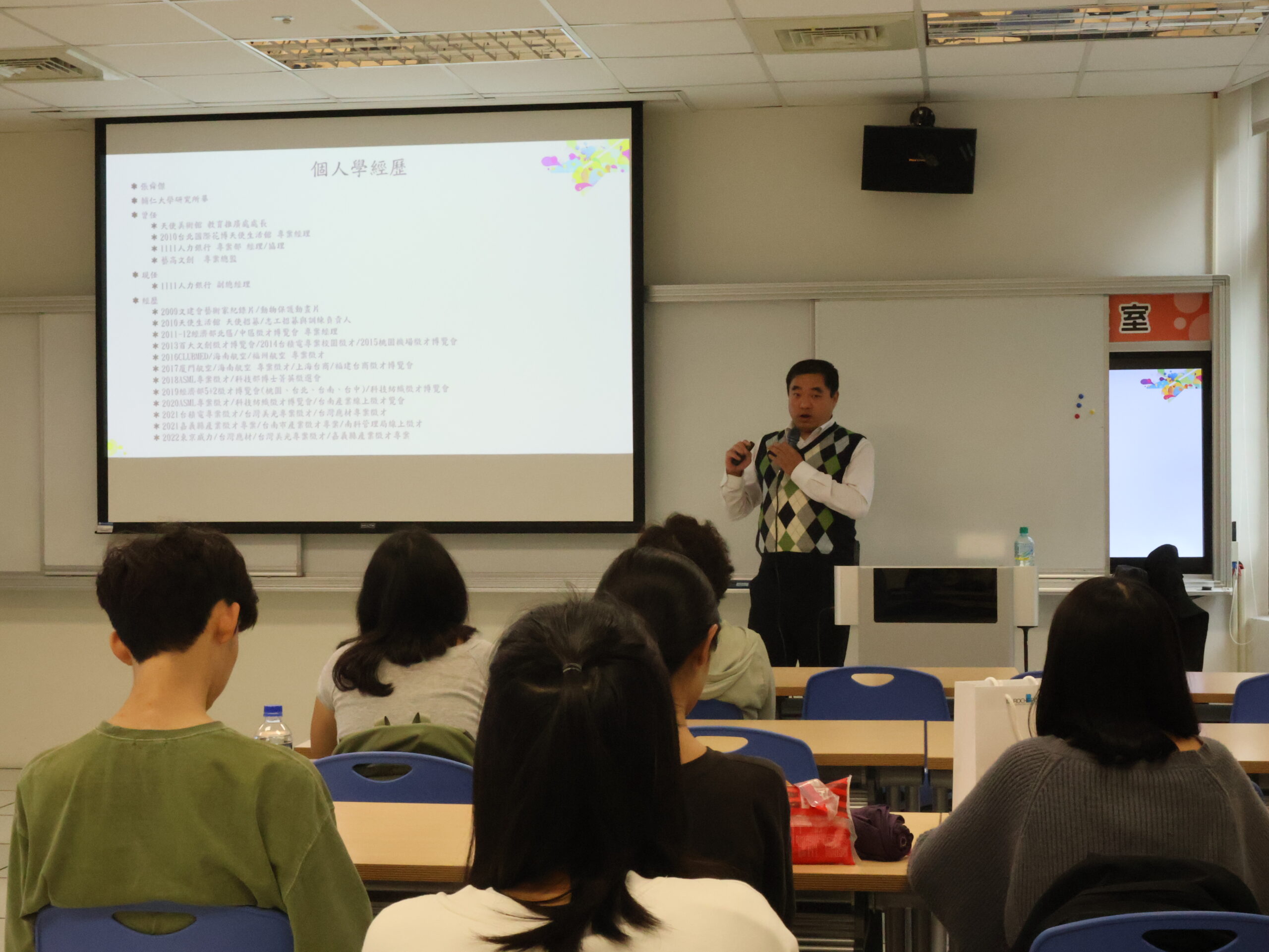 輔仁大學外國語文學院五月二十三號在德芳學院208教室舉辦「不可忽視的求職大小事」講座,邀請到1111人力銀行專案部副總經理張舜傑,介紹職能測驗的功能,更說明撰寫履歷需要注意的事項。