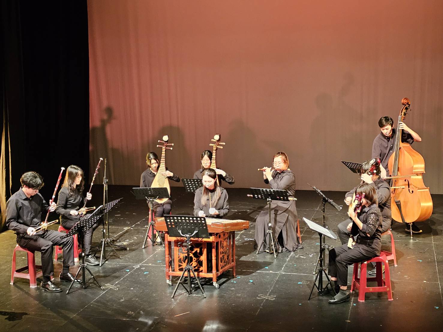 這次的成發以「流韻拾光」為主題,一共表演九首不同風格的曲目,像是傳統樂曲《良宵》、影視歌曲《大魚》,以及原住民歌謠《阿美阿美》,並在表演前講解曲目背景,讓對國樂不熟悉的觀眾也能一同享受樂聲交織出的音樂享宴。