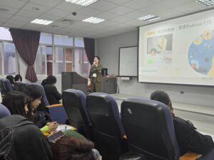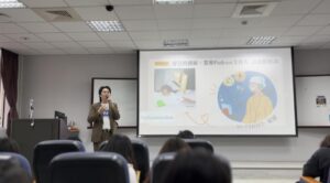 主講人威廉向同學們分享自媒體經營心法。(攝影/郭子瑜)