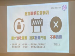 台灣詐欺犯罪問題日益嚴峻,黃謀信次長說道:「打詐並非單一部會的責任,而是全國動員的工作。」次長也在演講中表示,法務部的核心任務為「懲詐」,包括偵辦、起訴,以及對詐騙案件的審理。