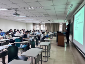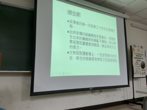 講者搭配簡報向在場學生說明什麼是「增生期」。(攝影/林芷嫻)