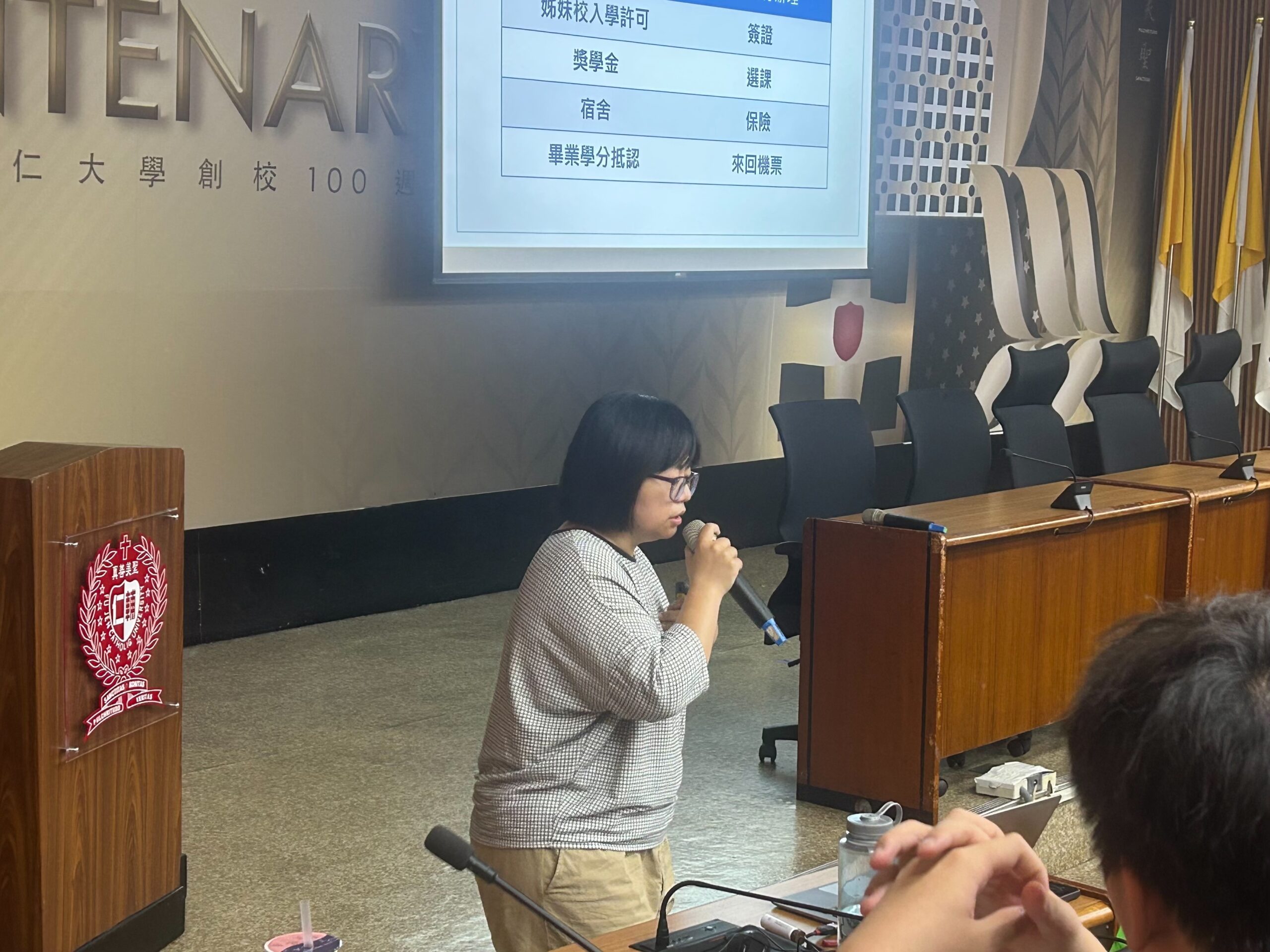 輔仁大學國際及兩岸教育處國際學生中心十月十四號在于斌樓谷欣廳舉辦「姊妹校交換學生計畫申請說明會」,說明會內容涵蓋交換學生計劃流程說明與注意事項,並鼓勵學生發問、交流。