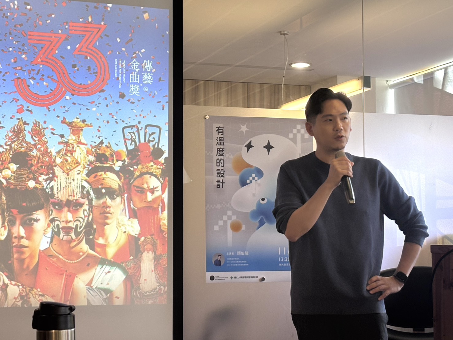 輔仁大學十一月二十六號在創意設計中心舉辦「有溫度的設計」講座,活動邀請三頁文設計負責人顏伯駿來為大家分享設計理念及想法,並介紹許多參與的設計作品,吸引許多學生到場參與。