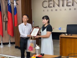 校方頒發感謝狀給謝詩雯講師。(攝影/張肯菱)