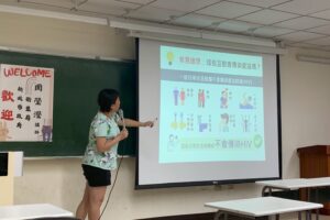 講師周瑩瑩和同學分享愛滋病毒篩檢資源。(攝影/李侑穎)