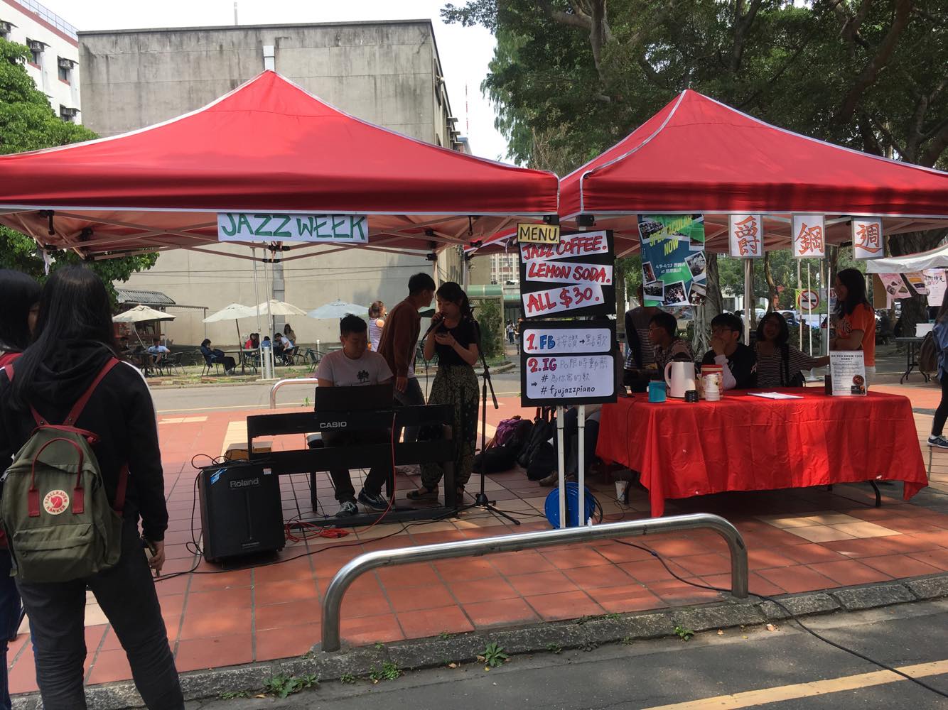 風華廣場琴聲悠揚,輔仁大學爵士鋼琴社四月九號到四月十三號舉辦爵鋼週,藉著現場演奏的弦律,吸引了校園中不少來往的學生們駐足欣賞。