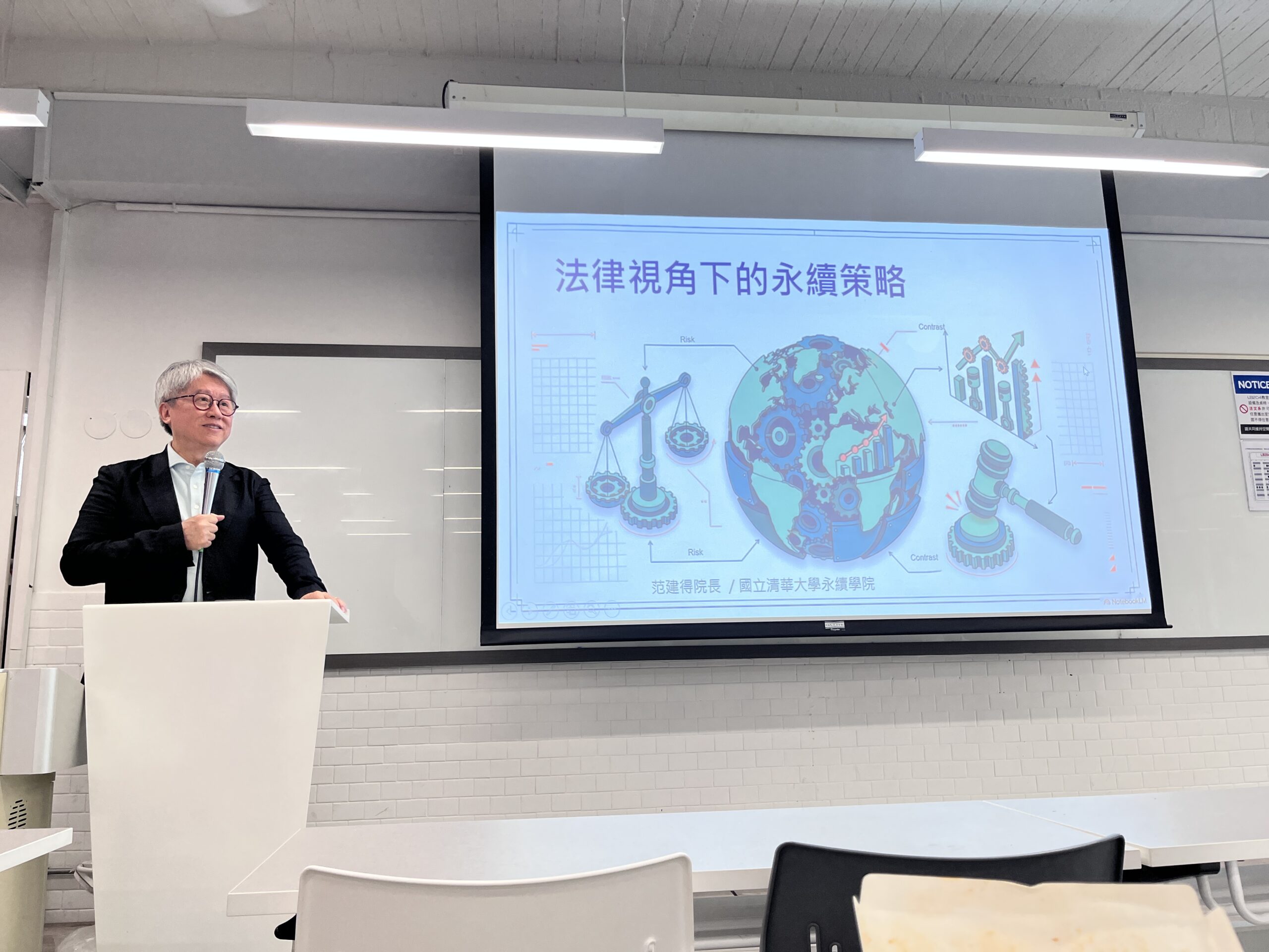 輔仁大學教師發展與教學資源中心四月十五號在德芳外語大樓舉辦「法律視角下的永續策略」講座,邀請清華大學生物倫理與法律研究中心教授范建得分享法律如何作為推動全球轉型的核心引擎,並探討碳定價機制與落實公正轉型的實務策略。