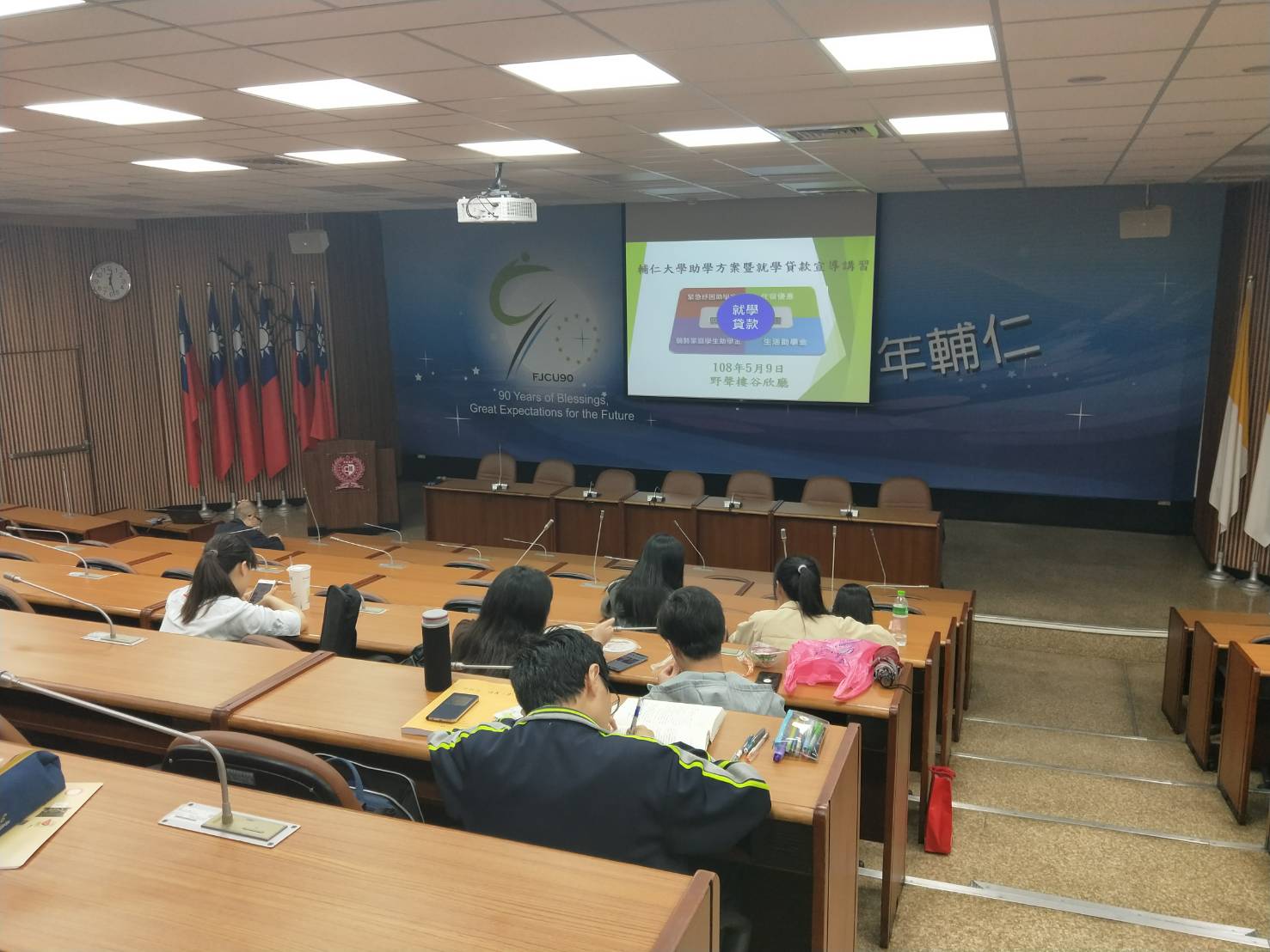 輔仁大學學生事務處生活輔導組承辦的助學方案暨就學貸款宣導講座在野聲樓谷欣廳舉行,希望讓學生更瞭解講學金的申請資格及相關流程。